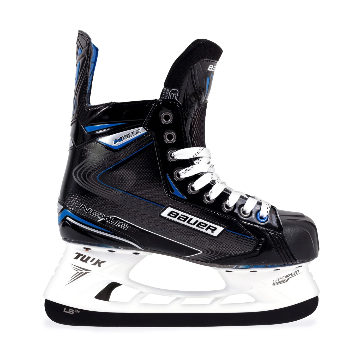 The Bauer Nexus Havok Senior Hockey Skate provides a volume fit with additional room built in the skate for players with wider feet and high insteps. This years Havok will feature a 3-D fiber composite quarter package, for a lightweight boot that wont compromise on performance. The outsole has also been upgraded to a full composite material, increasing rigidity and energy transfer.
