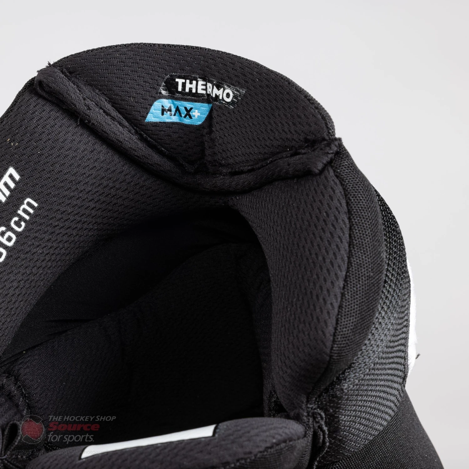 The molded cuffroll with molded logo allows you maximum wrist motion with its open design helping you get that extra snap on the puck while also providing incredible protection.