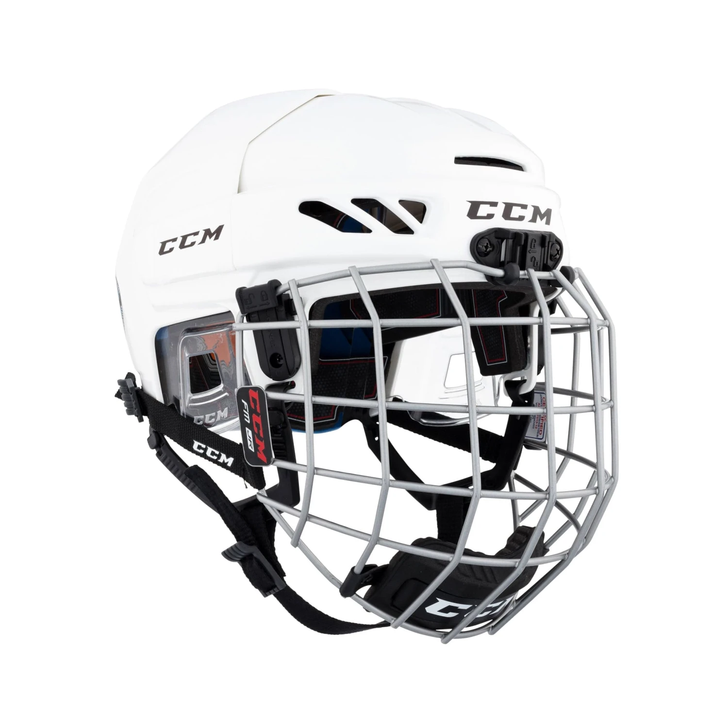 The CCM Fitlite 3DS Junior helmet and cage combos provide science based, age specific protection which addresses how young players are most likely to get injured. The FL 3DS combos offer four tool-less adjustments which enable young players to adjust the helmet themselves. These include an easy side snap, J-clip height adjustment, top clip adjustment, and a length adjustment.